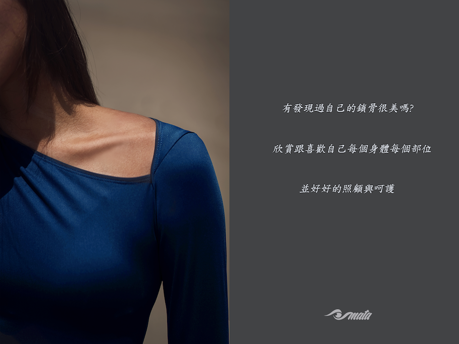 女生身體最美的部位之一 『鎖骨』 MATA 將這女生的絕美之處融入防磨衣裡 簡單又優雅的線條勾勒出女性曲線 柔美優雅地的在大海裡自由奔放